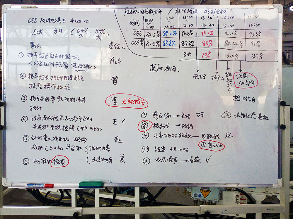 下午,萊雅就“OEE數(shù)據(jù)”開展了分析會,對公司3條生產(chǎn)線的OEE數(shù)據(jù)進行了分析與調(diào)查,并針對存在的問題提出了相關(guān)對策。