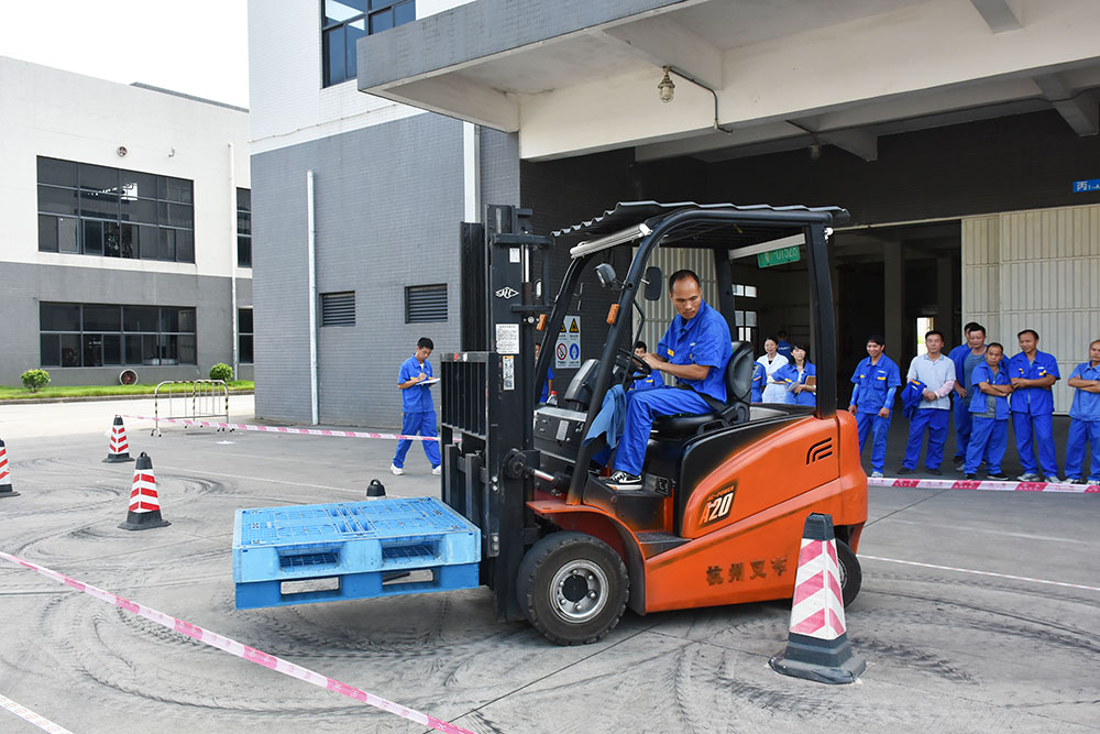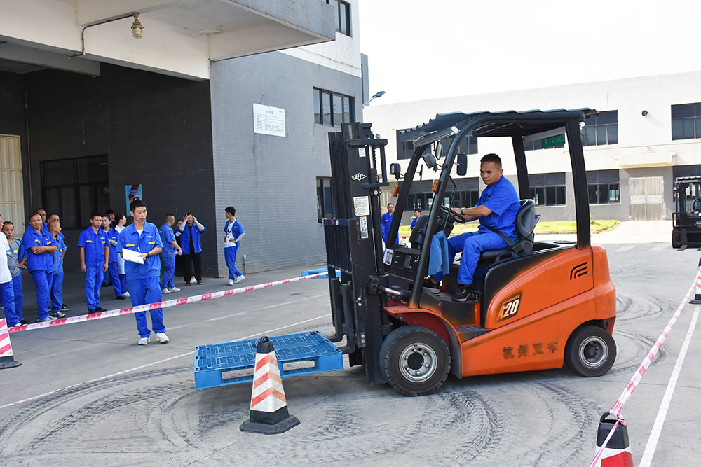 比賽期間,各位選手紛紛施展出自己熟練的操控技術(shù),前進(jìn)、倒退、轉(zhuǎn)彎,叉起物品繞過一個(gè)又一個(gè)三角路樁,動(dòng)作謹(jǐn)慎又流暢,激起現(xiàn)場陣陣掌聲。