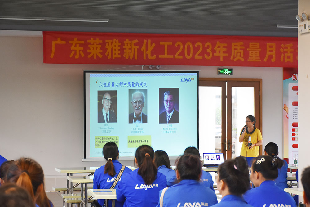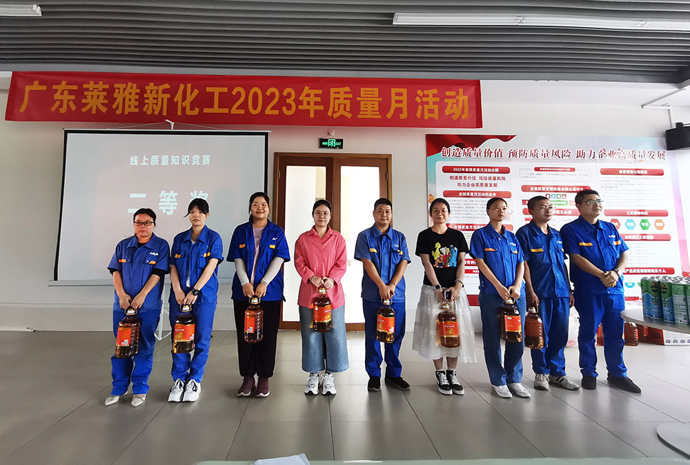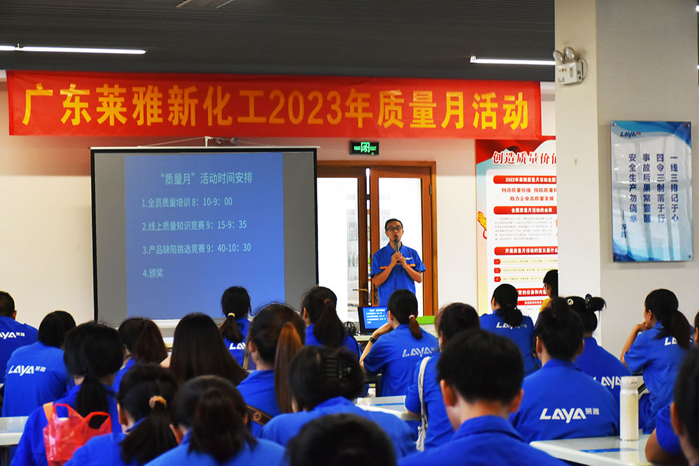 為全面貫徹黨的二十大精神,落實質(zhì)量強國戰(zhàn)略,進一步推動質(zhì)量效益穩(wěn)步提升,廣東萊雅新化工科技有限公司于9月初召開了主題為“落實質(zhì)量強企戰(zhàn)略,推動質(zhì)量持續(xù)提升”的“質(zhì)量月”啟動會議。此次啟動會議主要宣傳今年的質(zhì)量月主題,并公布活動方案。