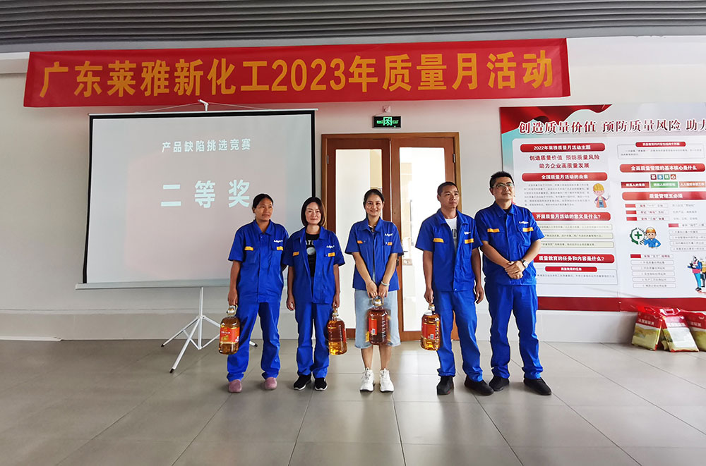 為提升全員質(zhì)量意識,進一步推動質(zhì)量效益穩(wěn)步提升,增強企業(yè)凝聚力和競爭力,廣東萊雅新化工科技有限公司于今年9月開展了主題為“落實質(zhì)量強企戰(zhàn)略,推動質(zhì)量持續(xù)提升”的一系列“質(zhì)量月”活動,本次活動持續(xù)了一個月,主要圍繞質(zhì)量月活動啟動會議、質(zhì)量月宣傳、線上質(zhì)量知識競賽、質(zhì)量知識大講堂、產(chǎn)品缺陷挑選競賽、農(nóng)藥產(chǎn)品飛行檢查模擬等幾大版塊展開。