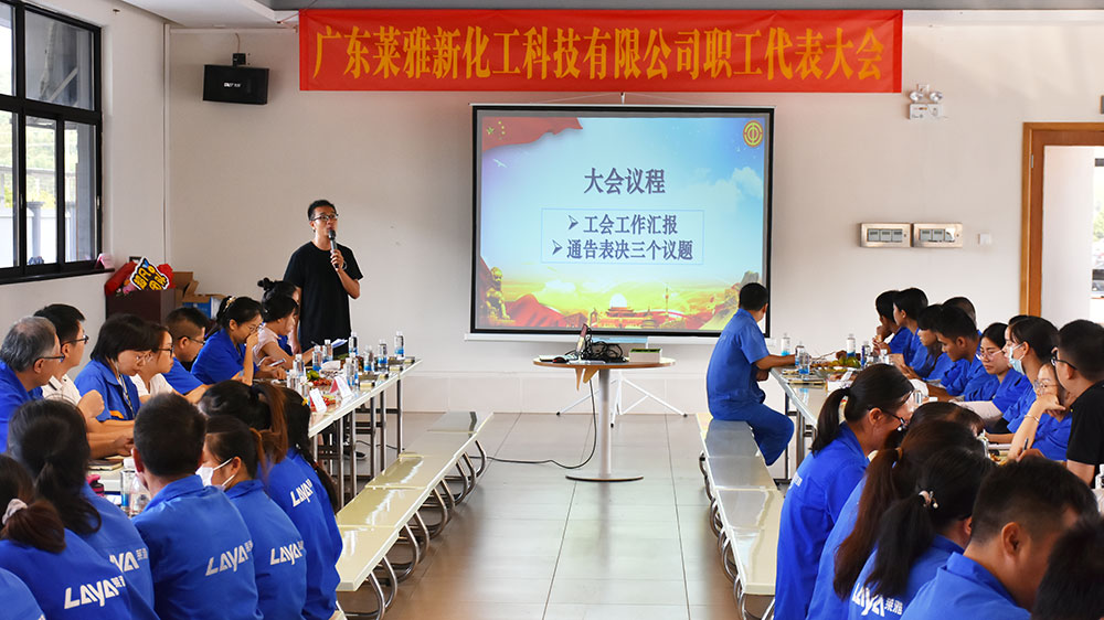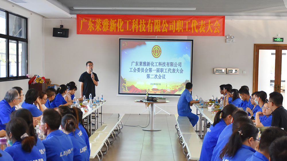 2022年9月27日,廣東萊雅新化工科技有限公司在綜合樓一樓舉行了2022年第一屆職工代表大會第二次會議。